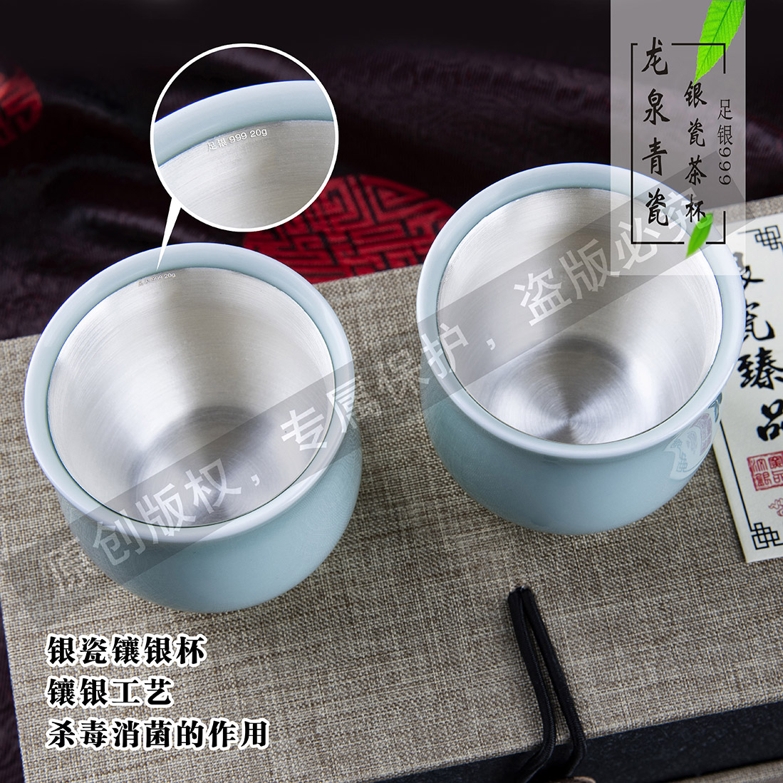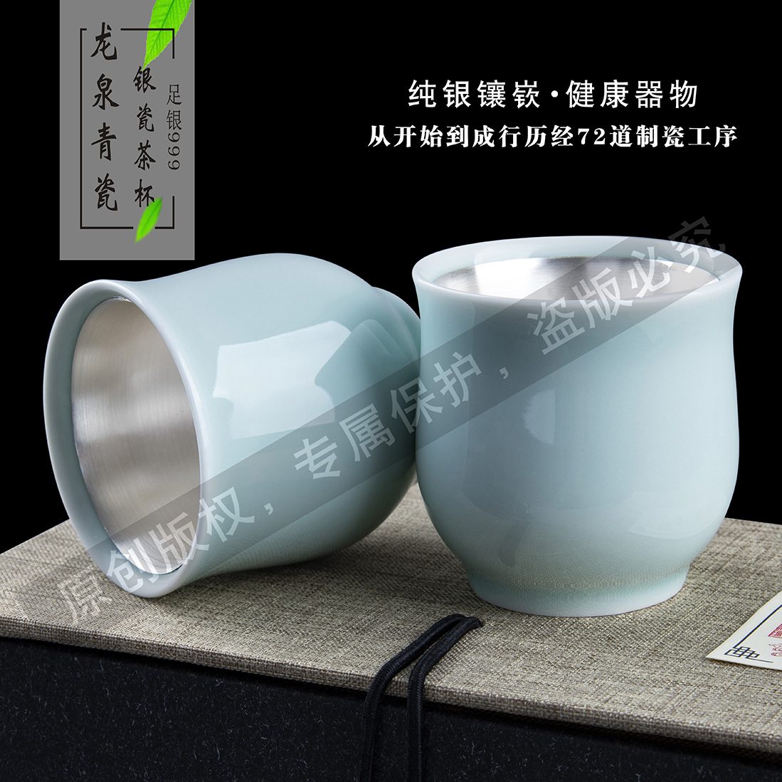 汝窯養生銀瓷茶杯